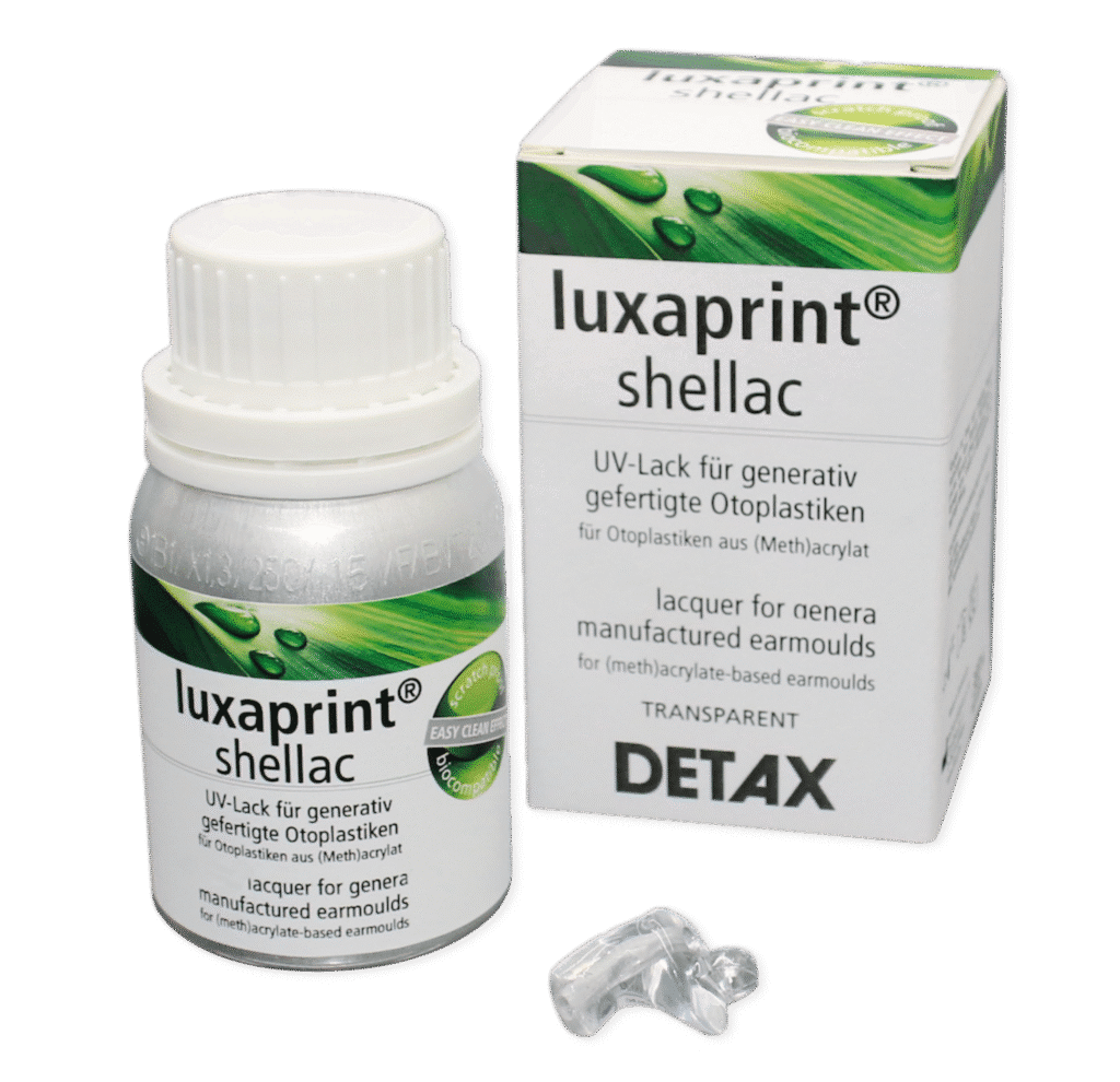 Detax's Luxaprint Shellac permanently seals the surfaces of generatively manufactured acrylate earmolds.