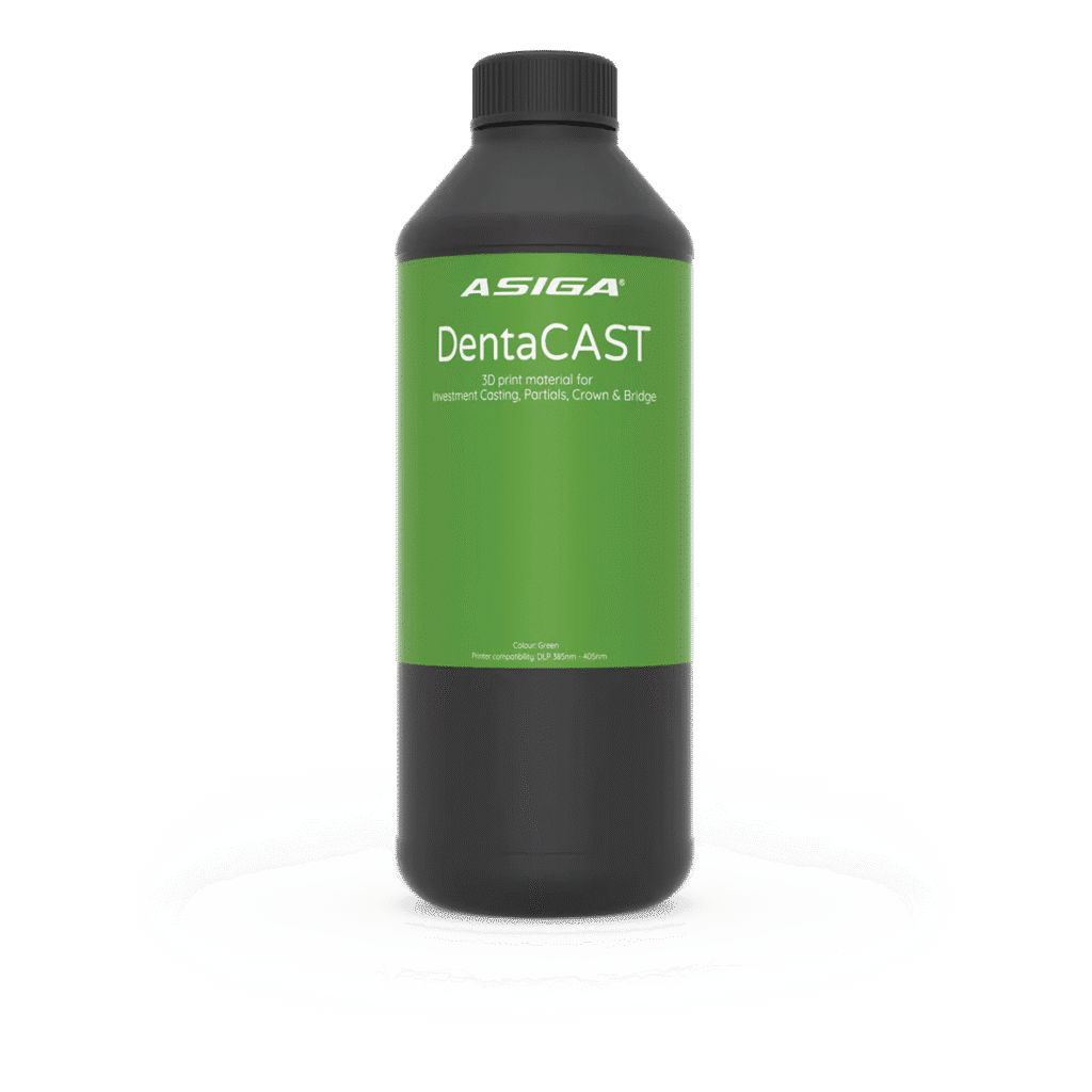 Asiga DentaCAST est un matériau de coulée directe « sans cendres » pour la coulée à la cire perdue. Fini les wax-up manuels, car avec la conception numérique et l’impression 3D, vous pouvez produire numériquement vos armatures partielles en métal, vos couronnes en or, vos bridges ou même presser le disilicate de lithium rapidement et avec précision.