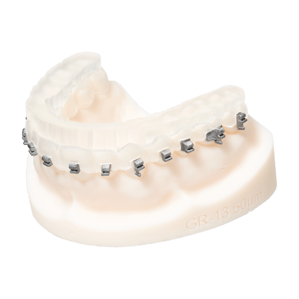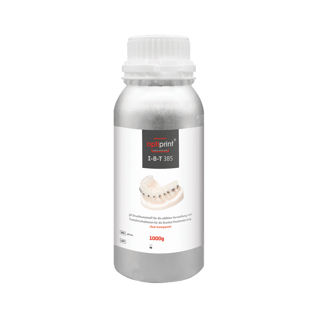 La résine biocompatible Optiprint IBT a été spécialement conçue pour la fabrication additive de gabarits de transfert destinés au positionnement de bagues orthodontiques.
