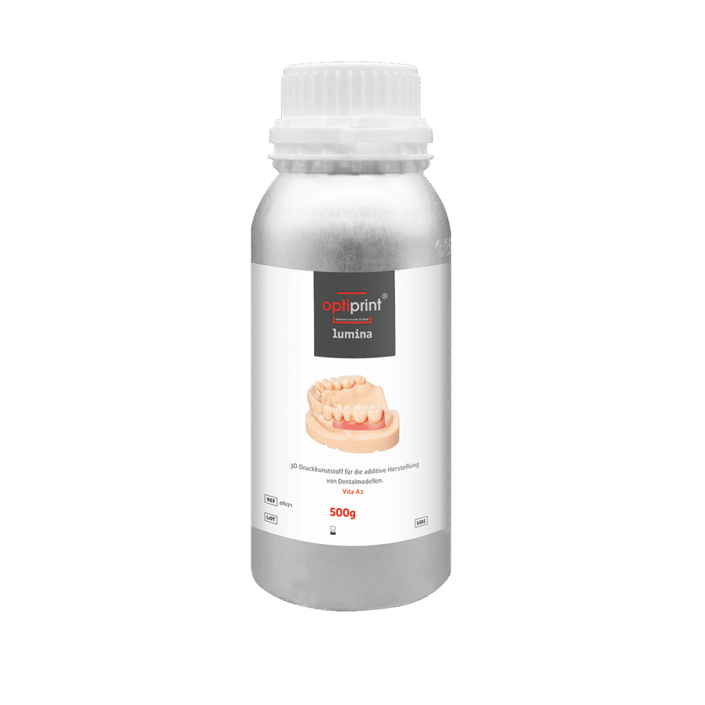 La résine Optiprint Lumina est une résine d’impression 3D translucide, développée pour la confection de couronnes et bridges provisoires d’aspect naturel.