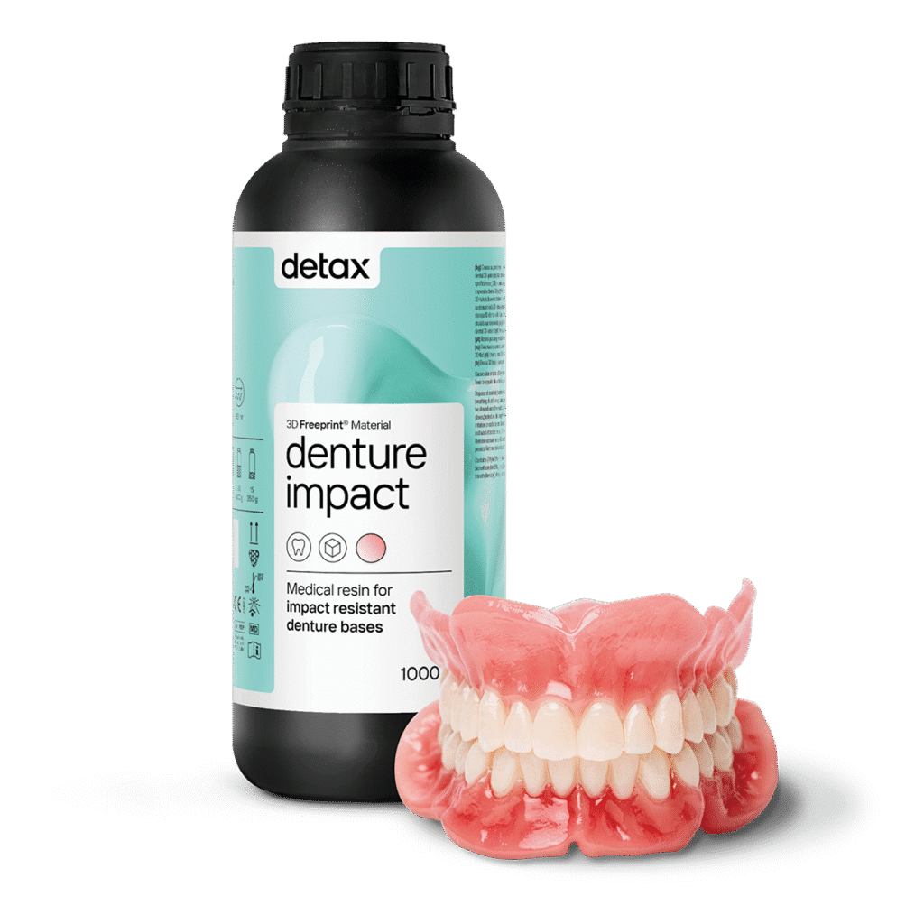 Idéale pour les laboratoires à la recherche de fiabilité et de performance, DETAX denture impact assure un traitement fluide, précis et une excellente tenue dans le temps.
