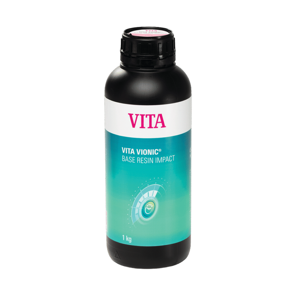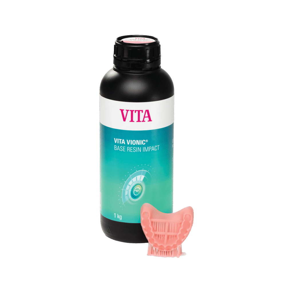 La résine VITA VIONIC BASE RESIN IMPACT est un matériau d’impression 3D résistant aux chocs, développé pour la fabrication de bases prothétiques amovibles définitives.