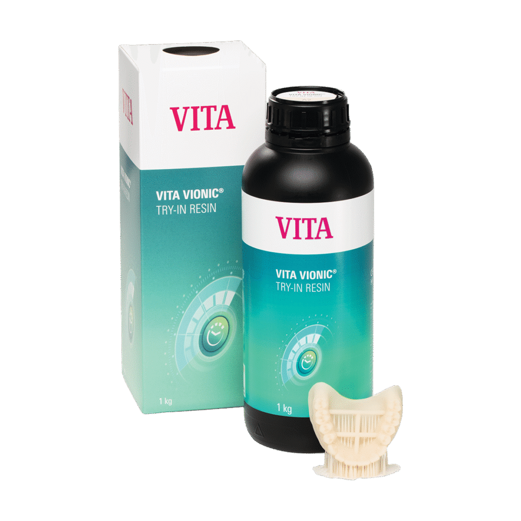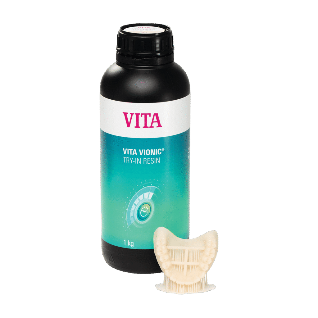 La résine VITA VIONIC TRY-IN RESIN est un matériau d’impression 3D développé pour la fabrication de prothèses amovibles d’essayage.