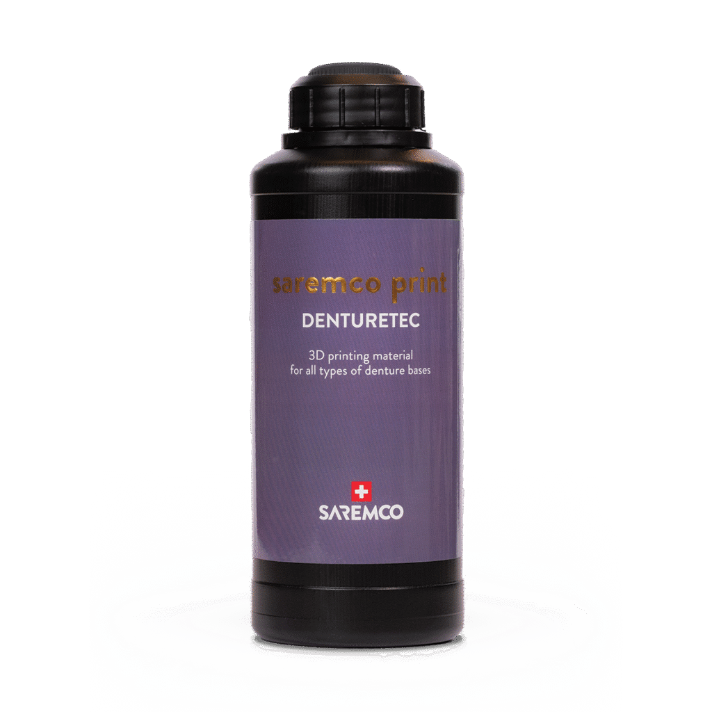 La résine Saremco DENTURETEC est une résine de haute qualité pour la production de tous les types de bases de prothèse hautement biocompatibles à l’aide de l’imprimante 3D “ASIGA MAX UV”.